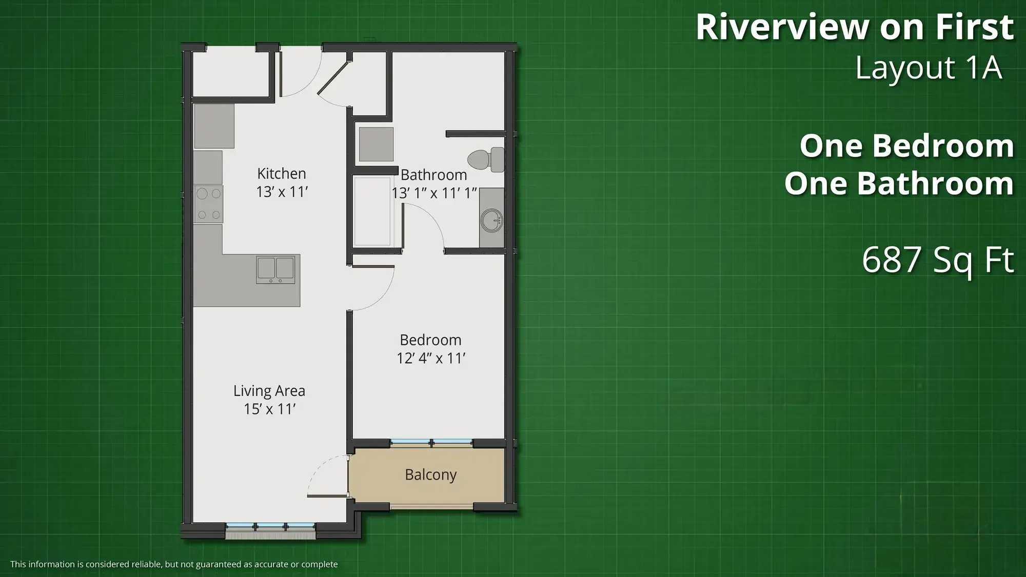 1 bedroom(s) 1 /bathroom(s) 687 - 800/ sq. ft.